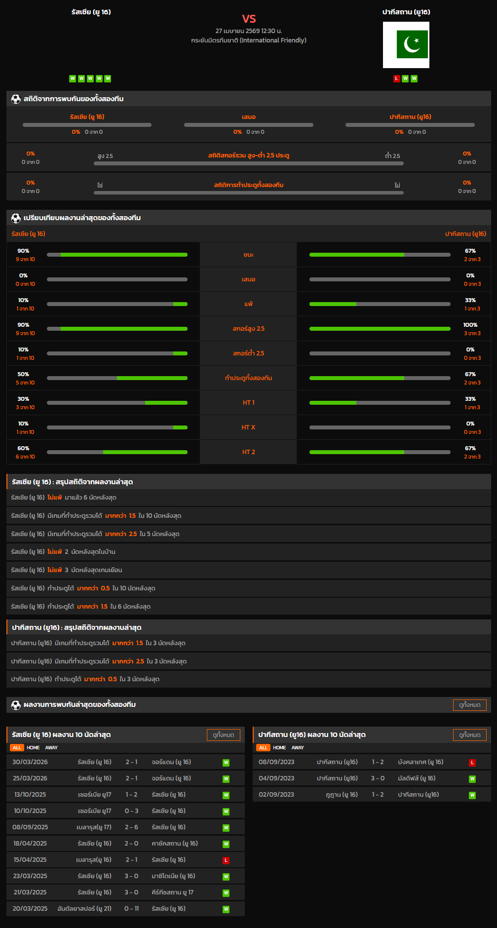 วิเคราะห์บอล กระชับมิตรทีมชาติ 2026 รัสเซีย (ยู 16) VS ปากีสถาน (ยู16)
