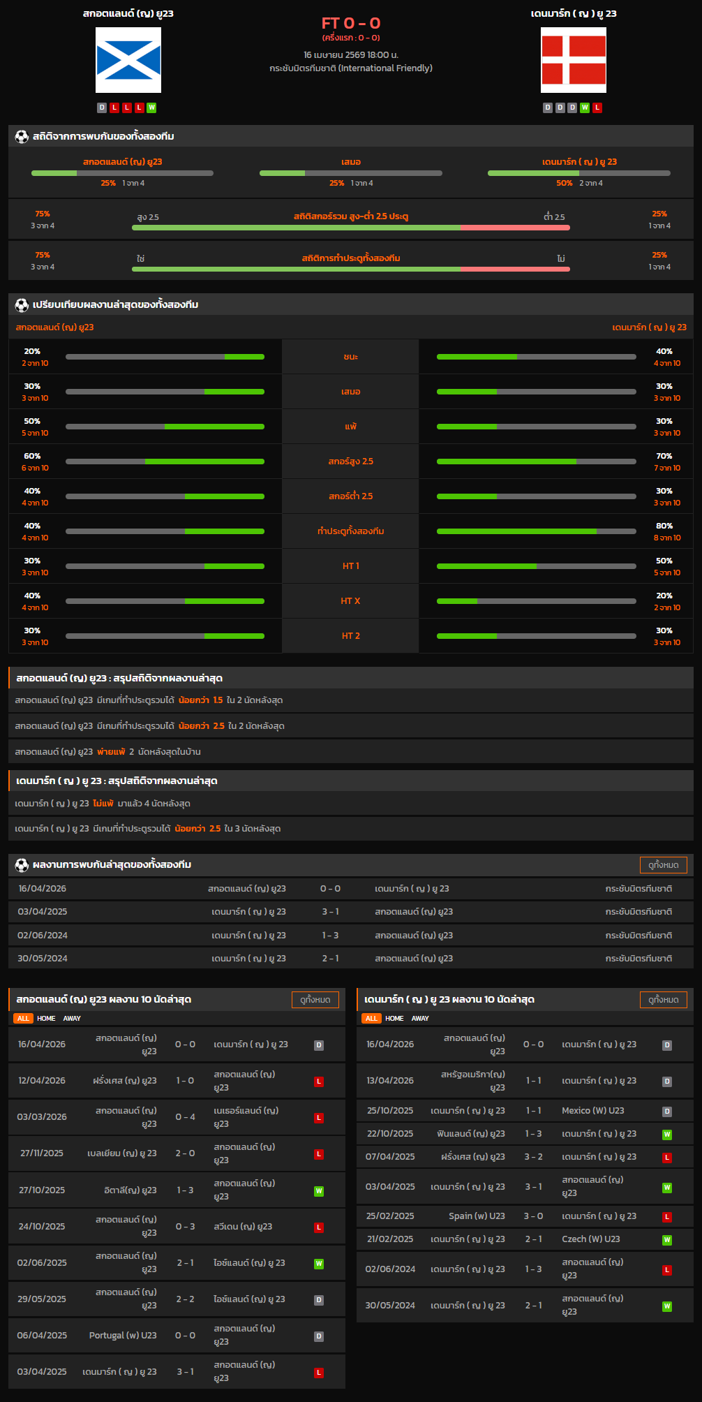 วิเคราะห์บอล กระชับมิตรทีมชาติ 2026 สกอตแลนด์ (ญ) ยู23 VS เดนมาร์ก ( ญ ) ยู 23