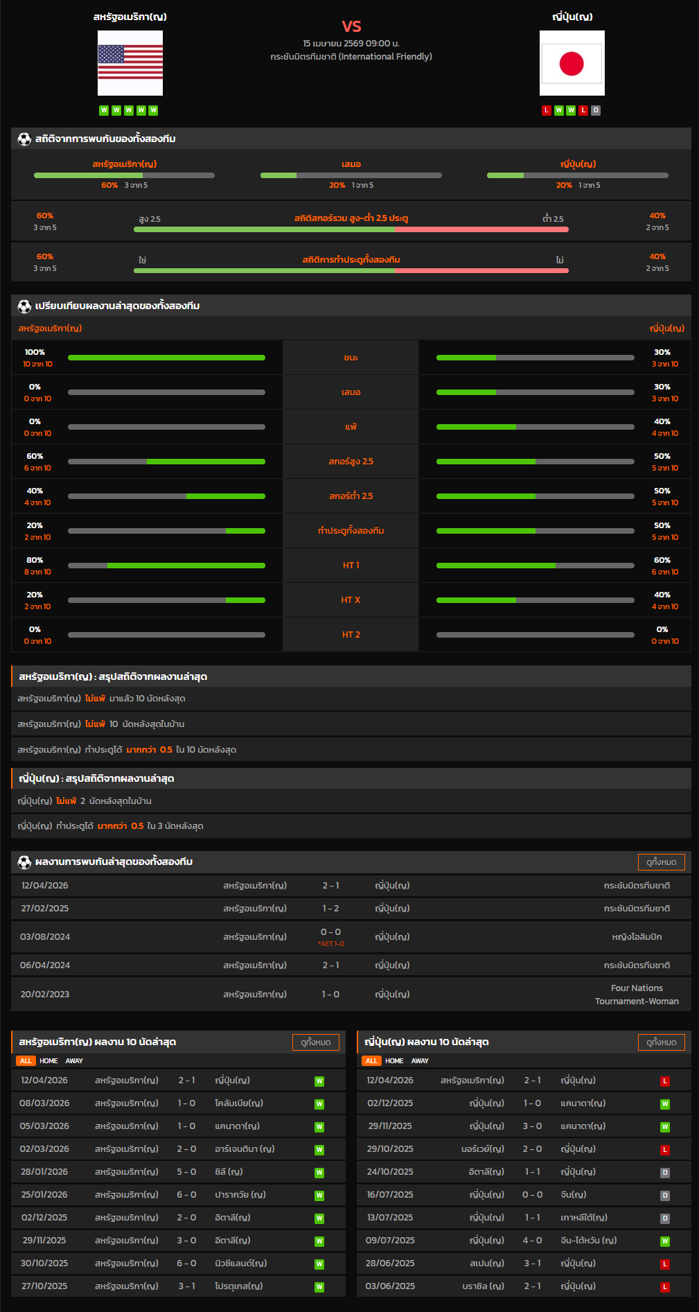 วิเคราะห์บอล กระชับมิตรทีมชาติ 2026 สหรัฐอเมริกา(ญ) VS ญี่ปุ่น(ญ)