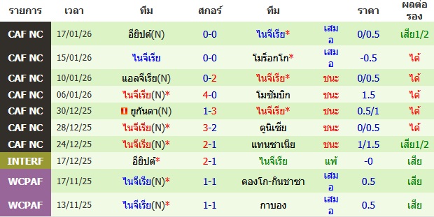 ผลงาน 10 นัดหลังสุดของทีม ไนจีเรีย