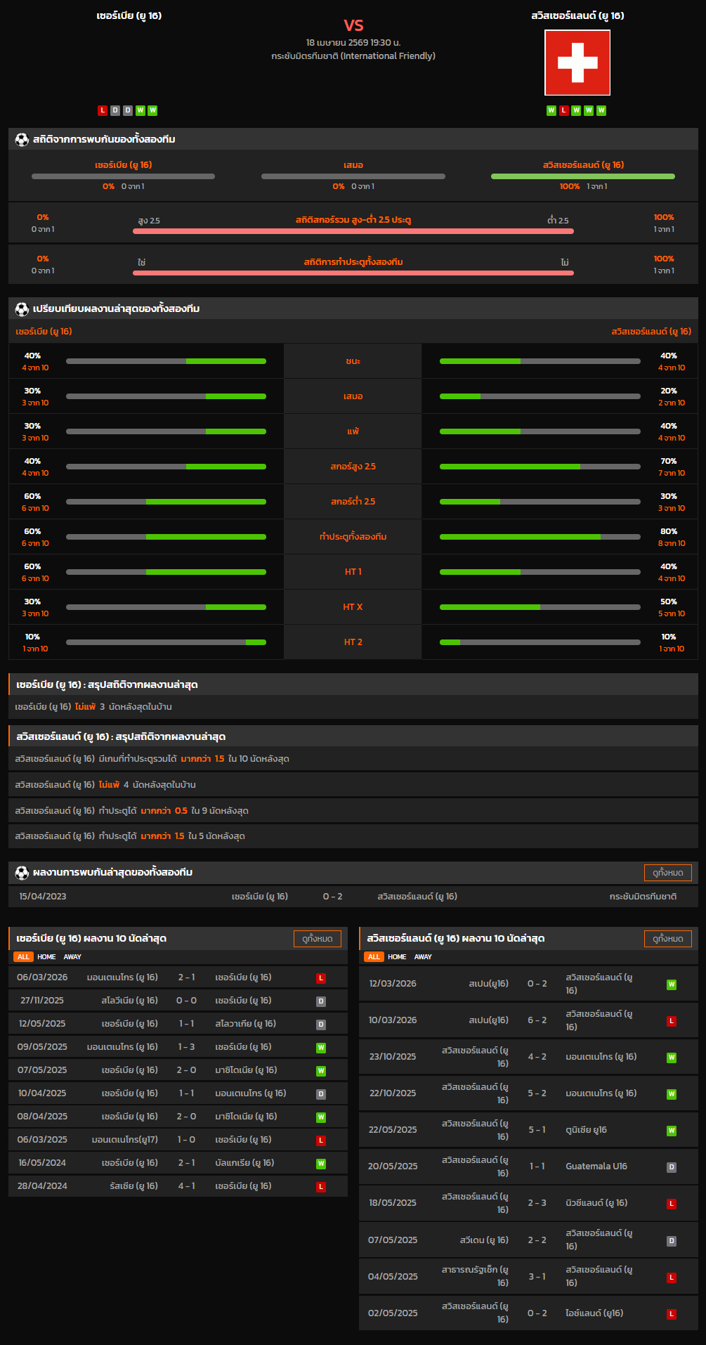 วิเคราะห์บอล กระชับมิตรทีมชาติ 2026 เซอร์เบีย (ยู 16) VS สวิสเซอร์แลนด์ (ยู 16)