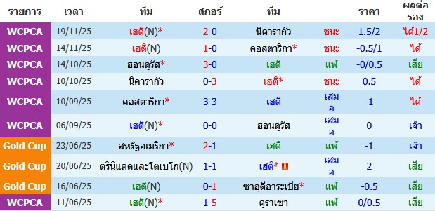 ผลงาน 10 นัดหลังสุดของทีม เฮติ