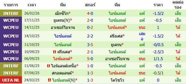 ผลงาน 10 นัดหลังสุดของทีม ไอซ์แลนด์