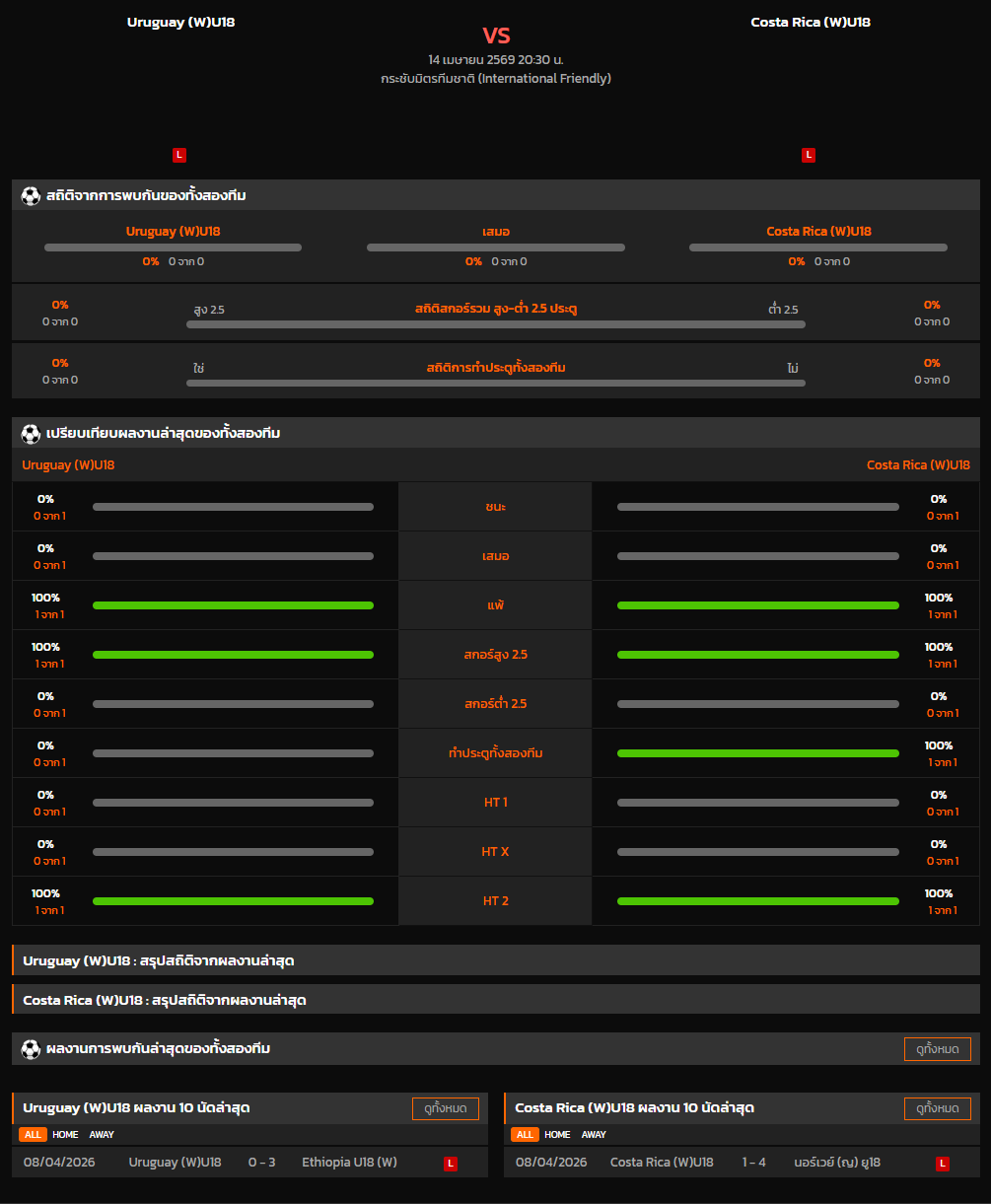 วิเคราะห์บอล กระชับมิตรทีมชาติ 2026 Uruguay (W)U18 VS Costa Rica (W)U18