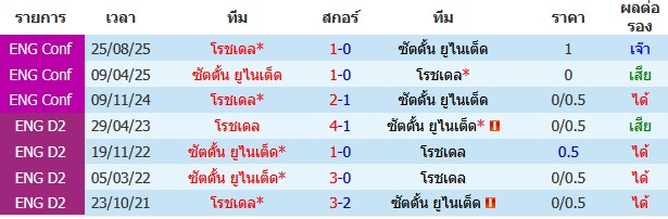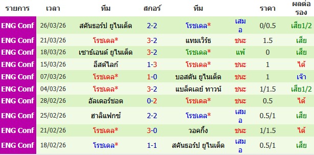 ผลงาน 10 นัดหลังสุดของทีม โรชเดล