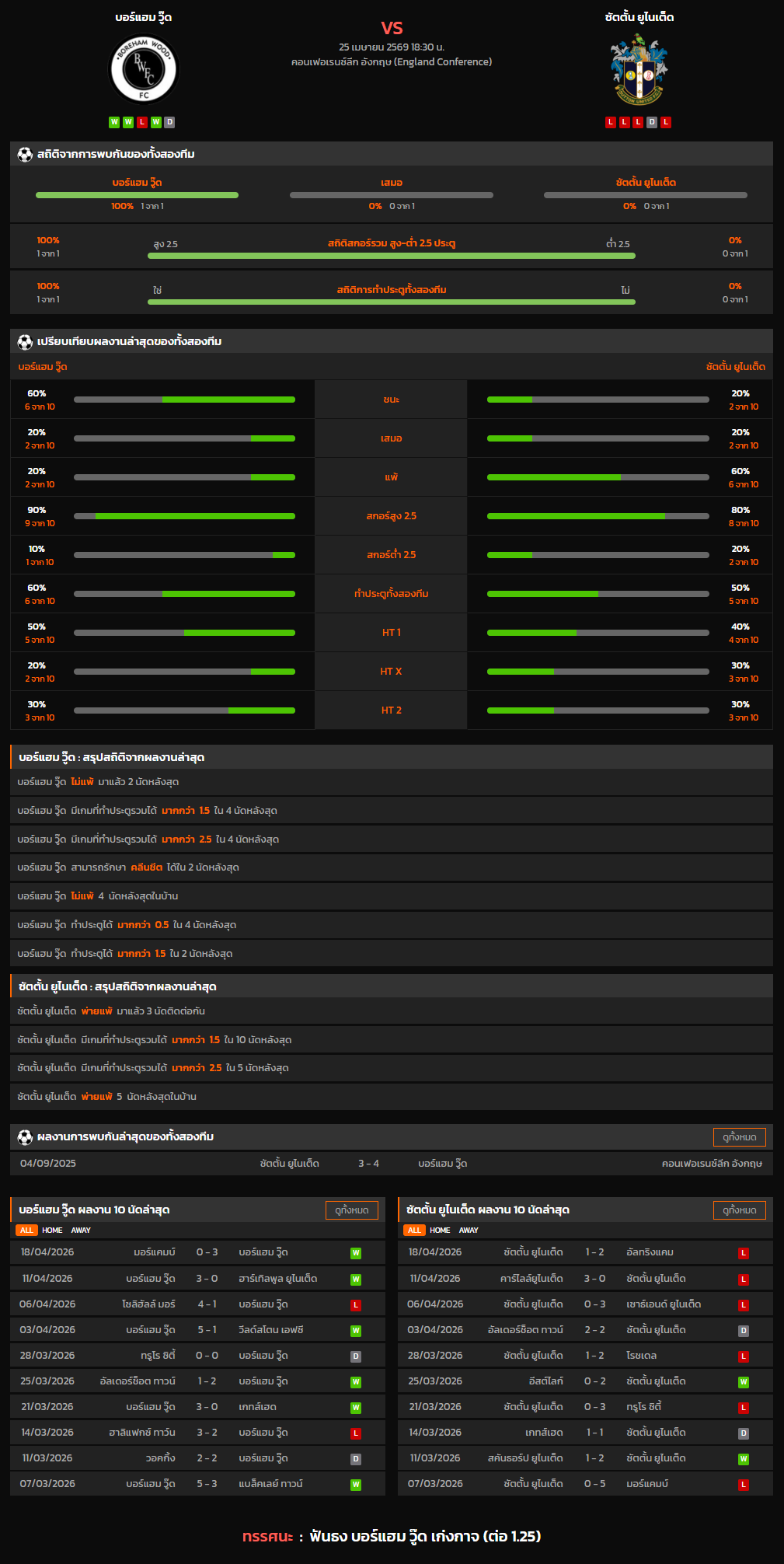 วิเคราะห์บอล คอนเฟอเรนซ์ลีก อังกฤษ 2025-26 บอร์แฮม วู๊ด VS ซัตตั้น ยูไนเต็ด
