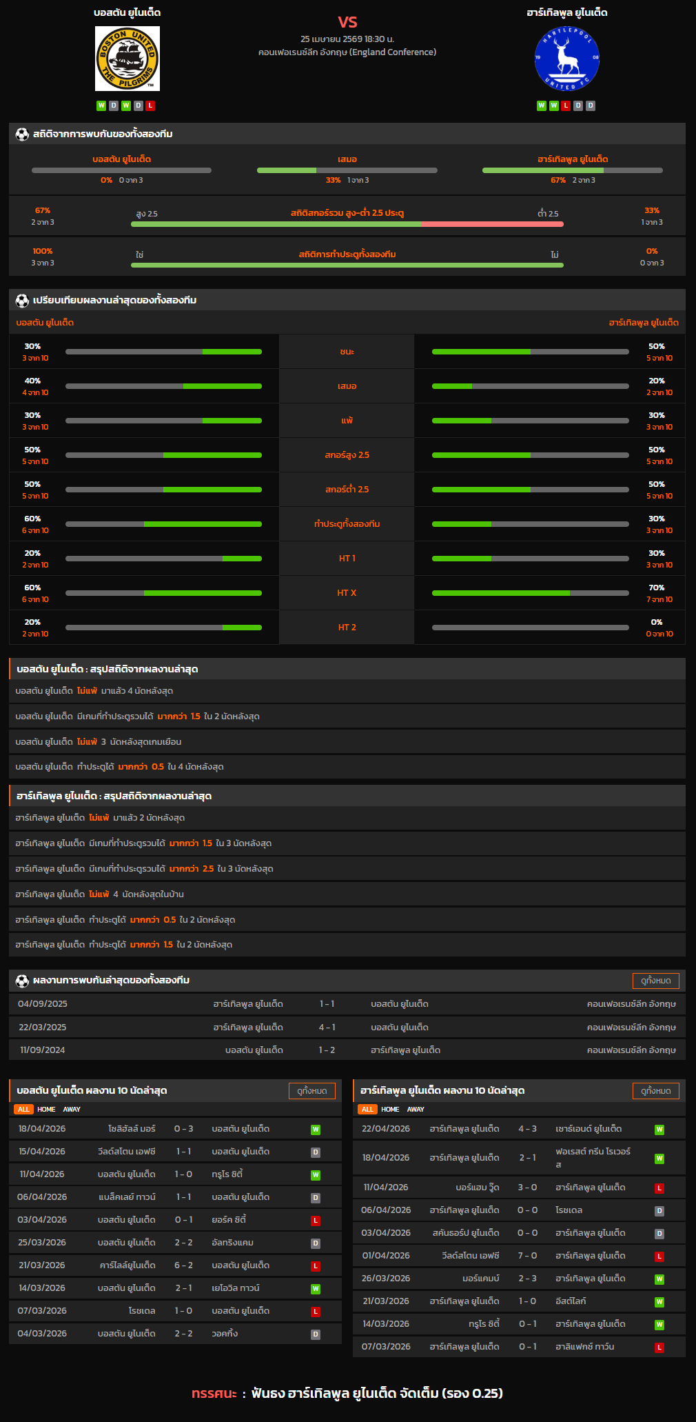 วิเคราะห์บอล คอนเฟอเรนซ์ลีก อังกฤษ 2025-26 บอสตัน ยูไนเต็ด VS ฮาร์เทิลพูล ยูไนเต็ด