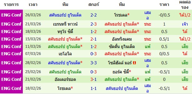 ผลงาน 10 นัดหลังสุดของทีม สคันธอร์ป ยูไนเต็ด