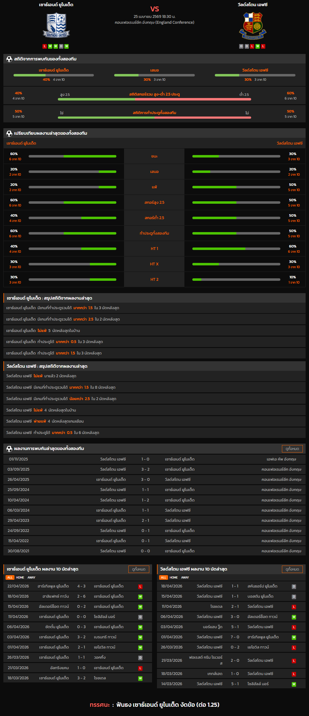 วิเคราะห์บอล คอนเฟอเรนซ์ลีก อังกฤษ 2025-26 เซาธ์เอนด์ ยูไนเต็ด VS วีลด์สโตน เอฟซี | วิเคราะห์บอล UFA7979