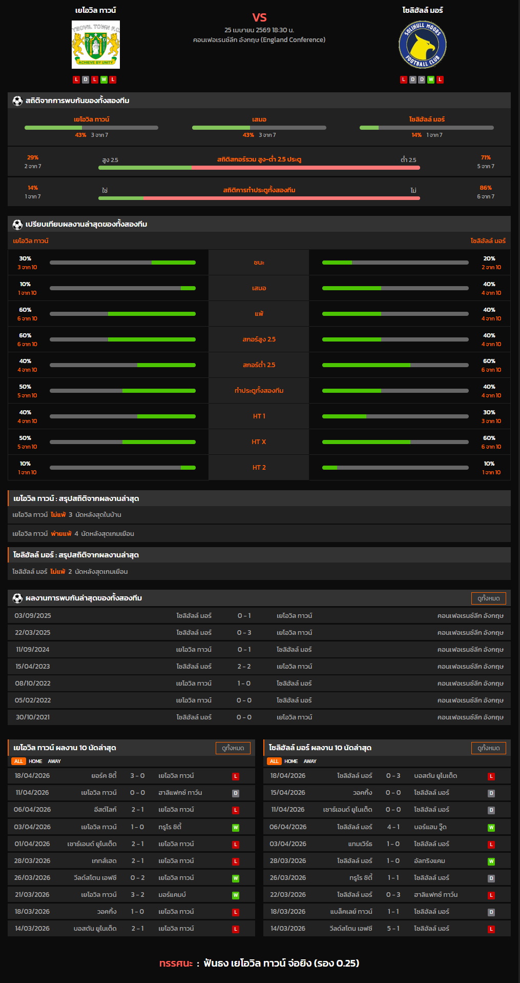 วิเคราะห์บอล คอนเฟอเรนซ์ลีก อังกฤษ 2025-26 เยโอวิล ทาวน์ VS โซลิฮัลล์ มอร์