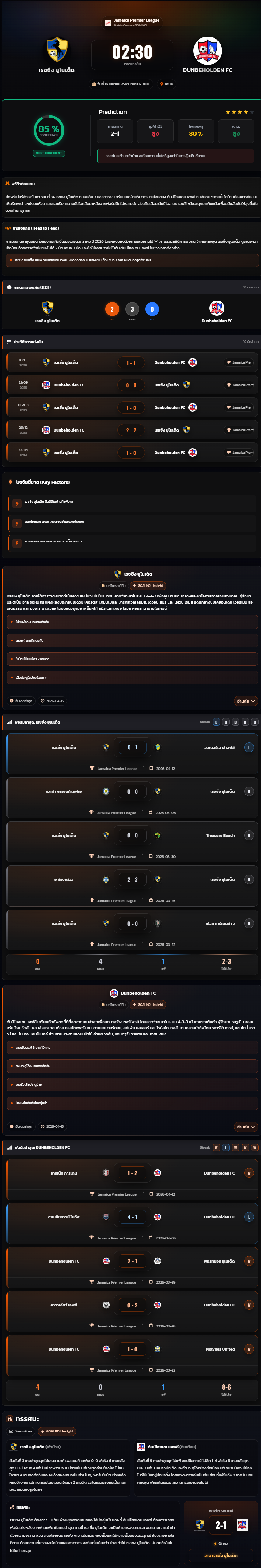 วิเคราะห์บอล จาเมก้า พรีเมียร์ลีก 2025-26 เรซซิ่ง ยูไนเต็ด vs Dunbeholden FC