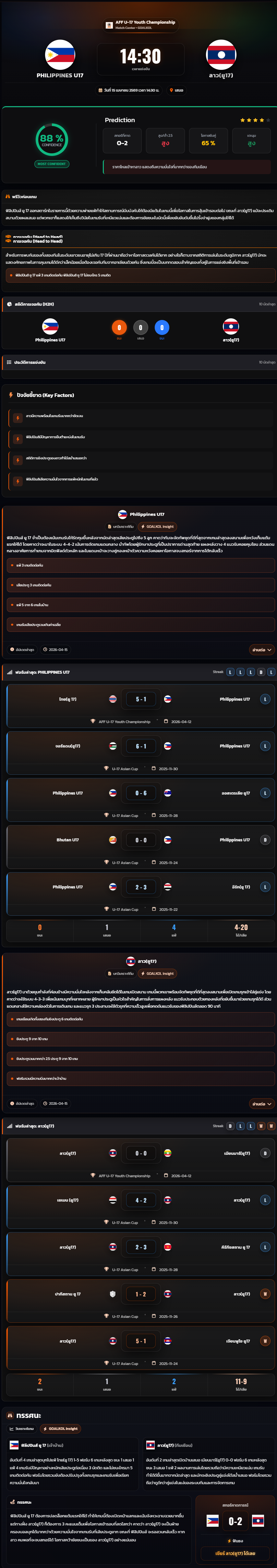 วิเคราะห์บอล ชิงแชมป์อาเซียน U-17 2026 ฟิลิปปินส์ (ยู17) vs ลาว(ยู17)