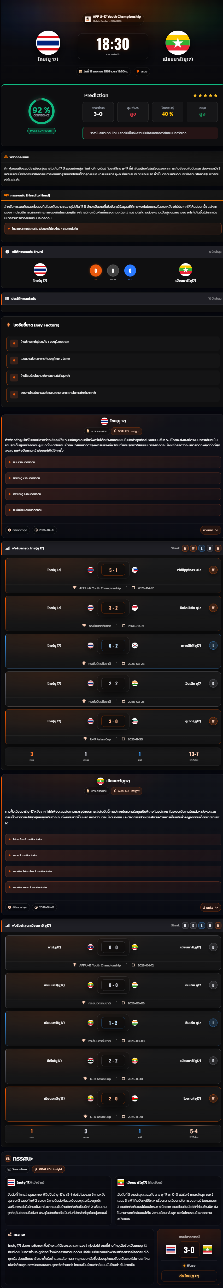 วิเคราะห์บอล ชิงแชมป์อาเซียน U-17 2026 ไทย(ยู 17) vs เมียนมาร์(ยู17)