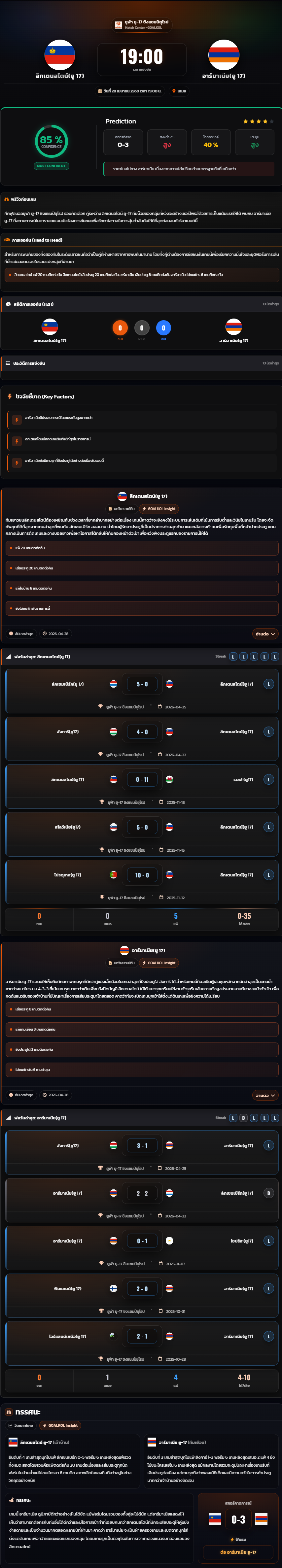 วิเคราะห์บอล ชิงแชมป์แห่งชาติยุโรป U-17 2026 ลิกเตนสไตน์(ยู 17) vs อาร์มาเนีย(ยู 17)