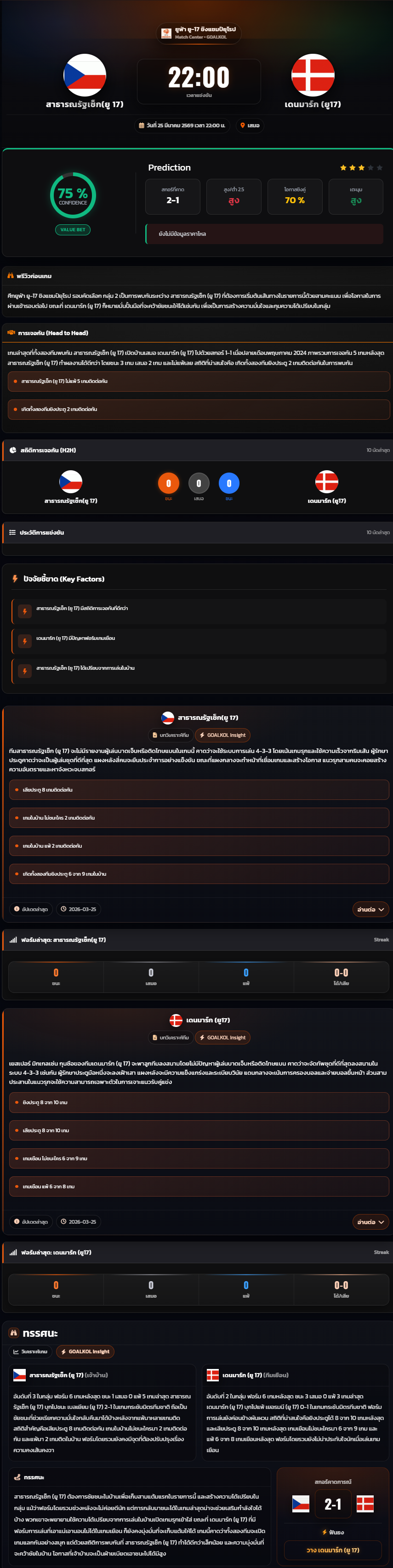 วิเคราะห์บอล ชิงแชมป์แห่งชาติยุโรป U-17 2026 สาธารณรัฐเช็ก(ยู 17) vs เดนมาร์ก (ยู17)