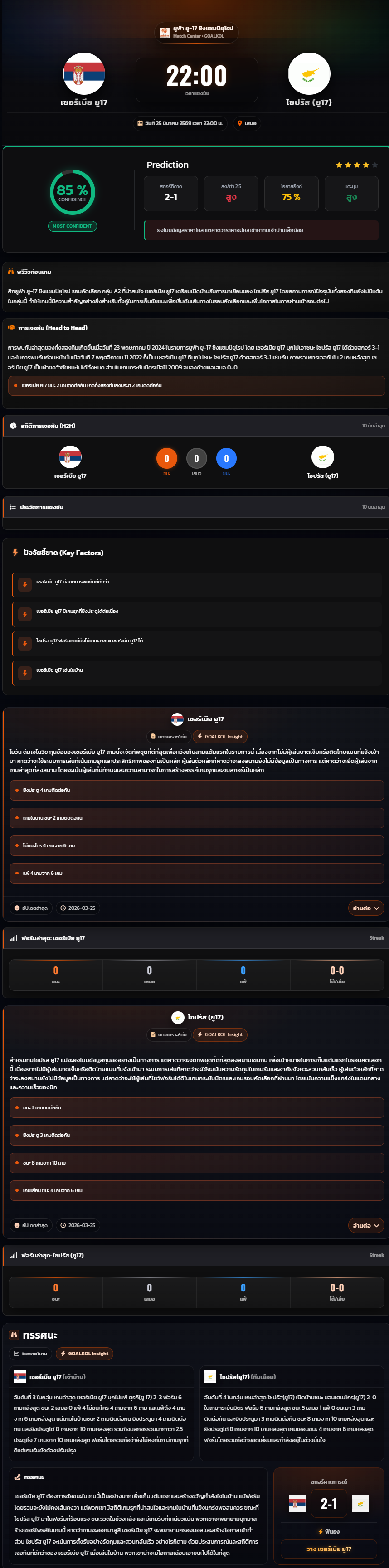 วิเคราะห์บอล ชิงแชมป์แห่งชาติยุโรป U-17 2026 เซอร์เบีย ยู17 vs ไซปรัส (ยู17)