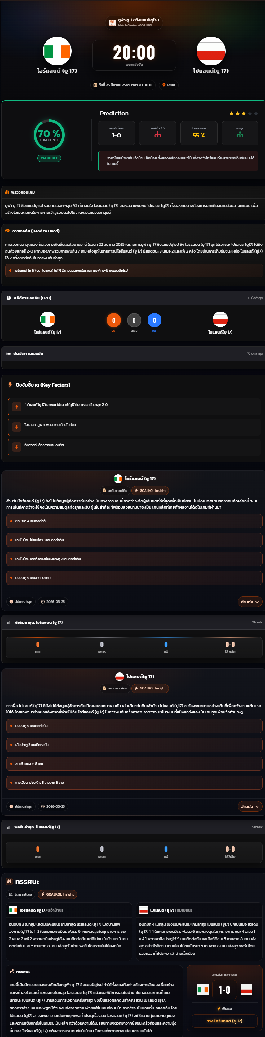 วิเคราะห์บอล ชิงแชมป์แห่งชาติยุโรป U-17 2026 ไอร์แลนด์ (ยู 17) vs โปแลนด์(ยู 17)