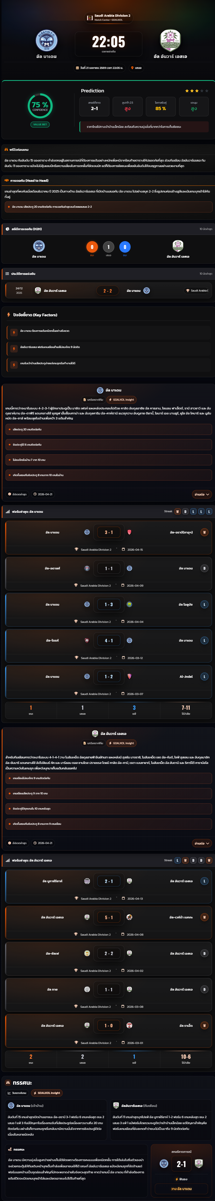 วิเคราะห์บอล ซาอุดิอาระเบีย ดิวิชั่น 2 2025-26 อัล บาเดน vs อัล อันวาร์ เอสเอ