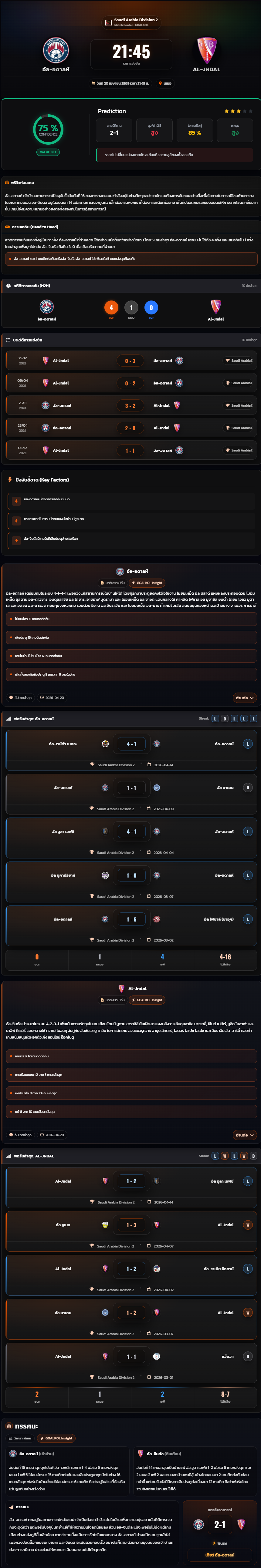 วิเคราะห์บอล ซาอุดิอาระเบีย ดิวิชั่น 2 2025-26 อัล-อดาลห์ vs Al-Jndal