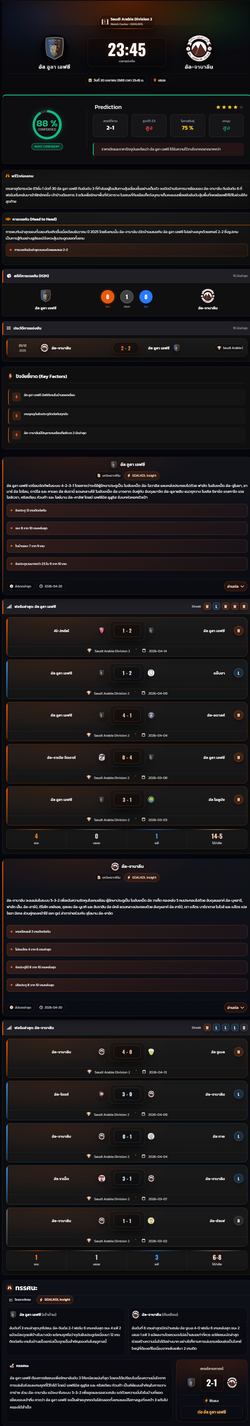 วิเคราะห์บอล ซาอุดิอาระเบีย ดิวิชั่น 2 2025-26 อัล อูลา เอฟซี vs อัล-จาบาลีน