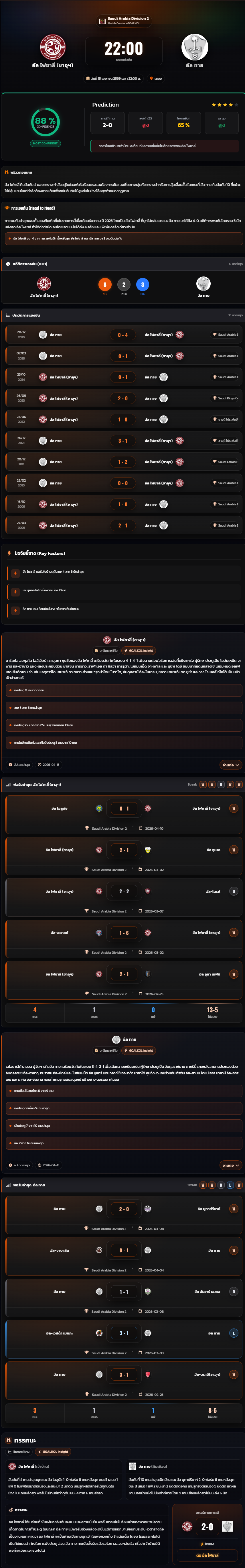 วิเคราะห์บอล ซาอุดิอาระเบีย ดิวิชั่น 2 2025-26 อัล ไฟซาลี่ (ซาอุฯ) vs อัล ทาย