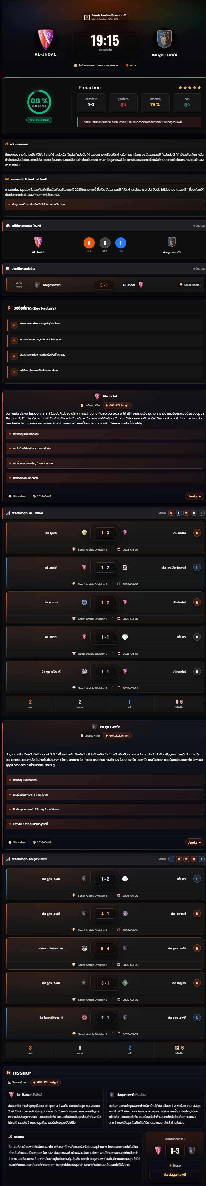 วิเคราะห์บอล ซาอุดิอาระเบีย ดิวิชั่น 2 2025-26 Al-Jndal vs อัล อูลา เอฟซี