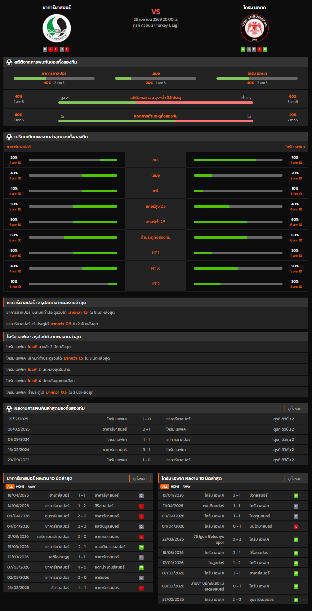 วิเคราะห์บอล ตุรกี ดิวิชั่น 2 2025-26 ซาคาร์ยาสปอร์ VS โครัม เอฟเค