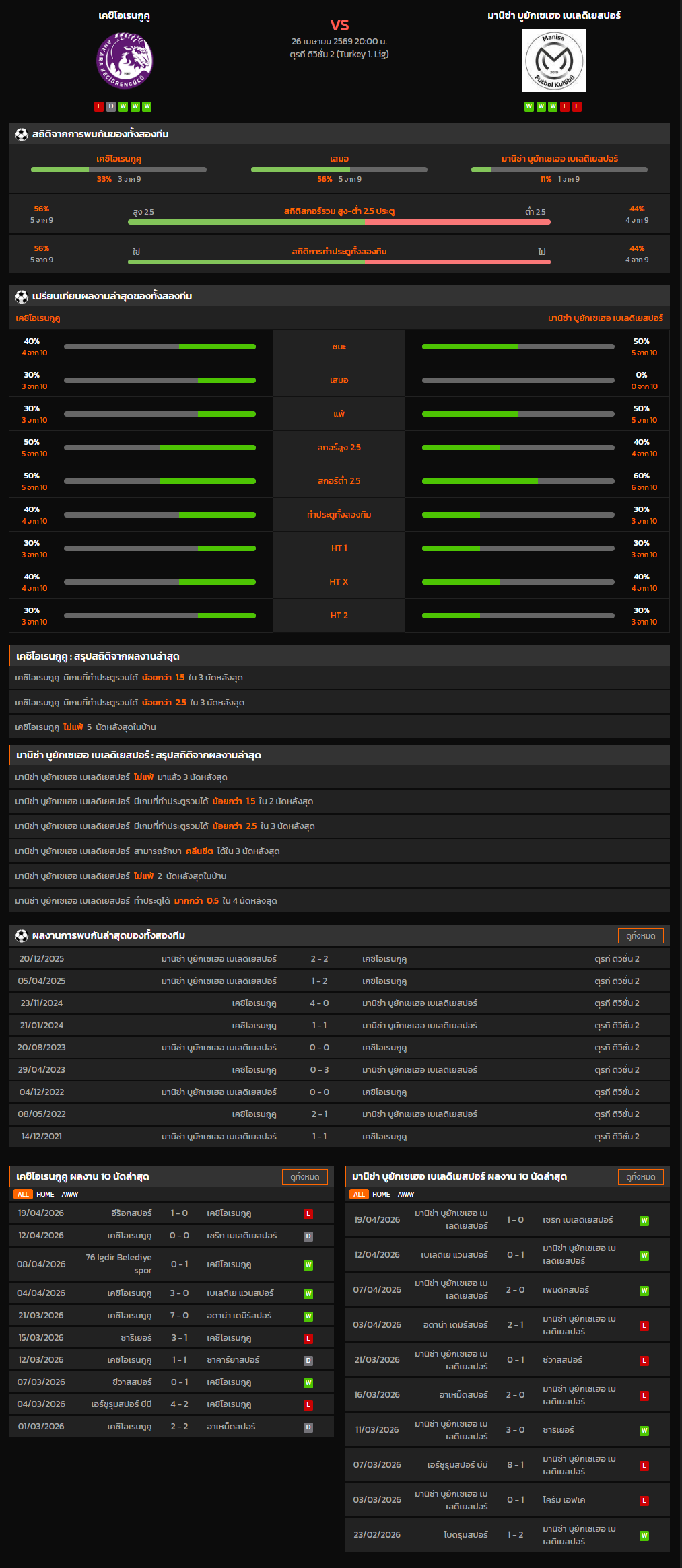 วิเคราะห์บอล ตุรกี ดิวิชั่น 2 2025-26 เคซิโอเรนกูคู VS มานิซ่า บูยักเซเฮอ เบเลดิเยสปอร์