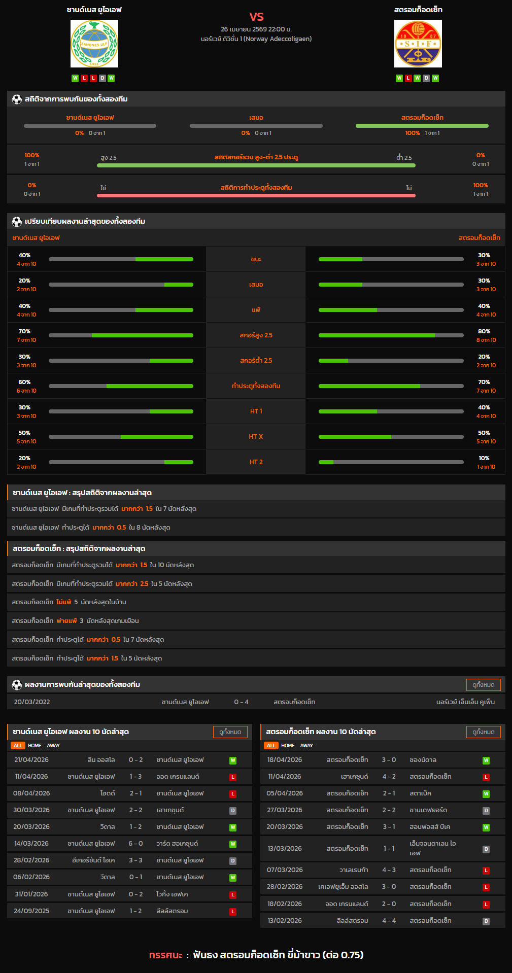 วิเคราะห์บอล นอร์เวย์ ดิวิชั่น 1 2025-26 ซานด์เนส ยูไอเอฟ VS สตรอมก็อดเซ็ท