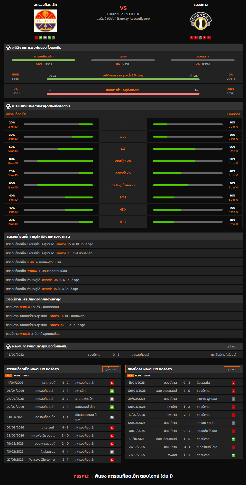 วิเคราะห์บอล นอร์เวย์ ดิวิชั่น 1 2025-26 สตรอมก็อดเซ็ท VS ซองน์ดาล