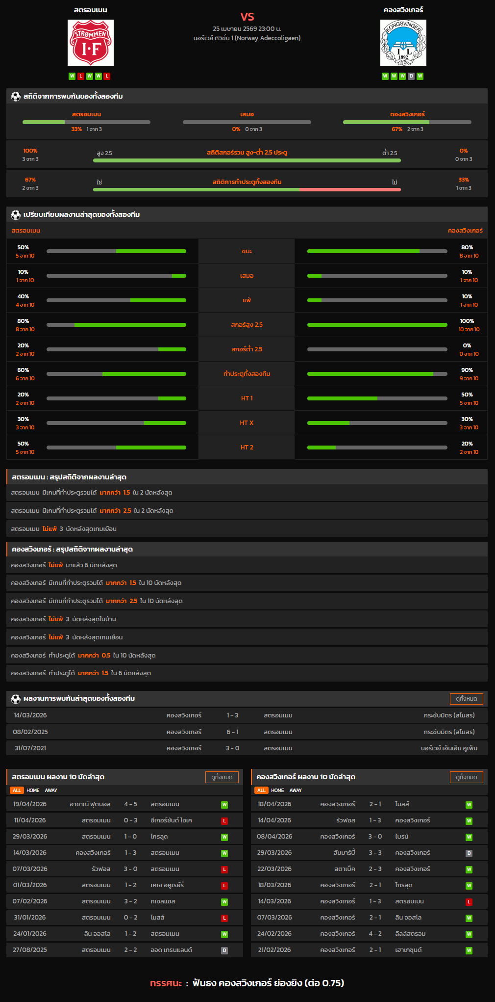 วิเคราะห์บอล นอร์เวย์ ดิวิชั่น 1 2025-26 สตรอมเมน VS คองสวิงเกอร์