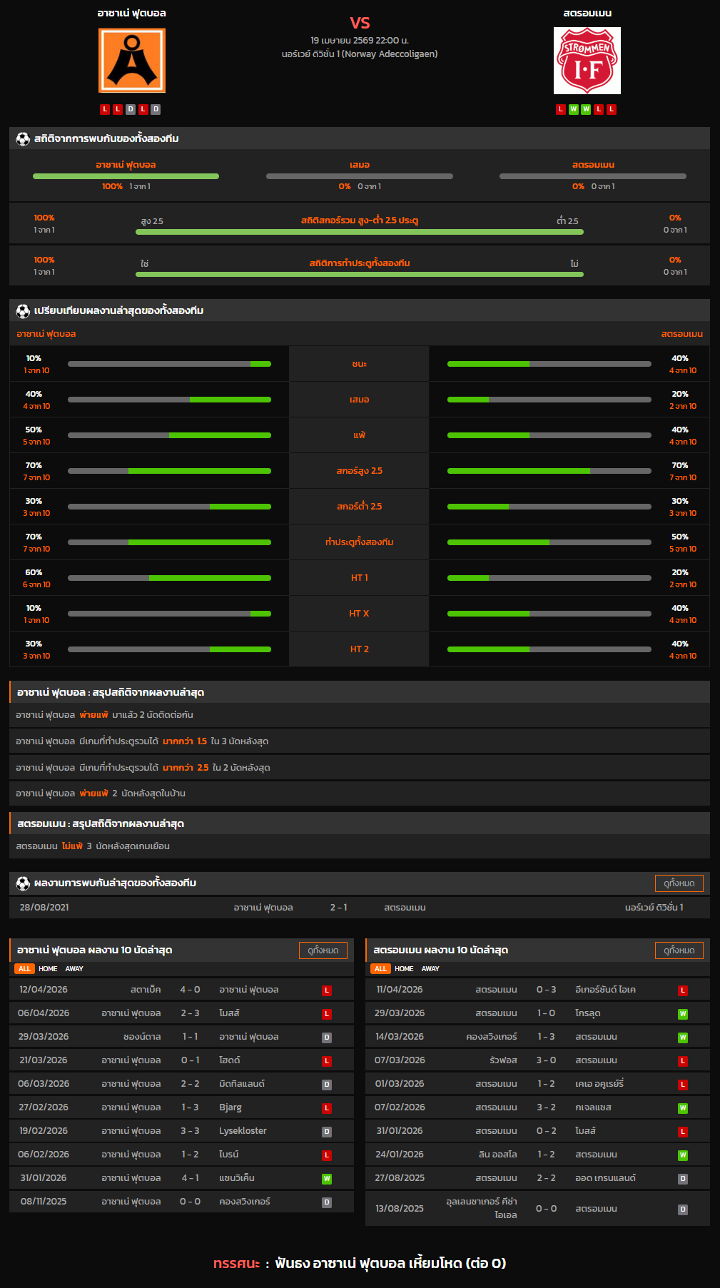 วิเคราะห์บอล นอร์เวย์ ดิวิชั่น 1 2025-26 อาซาเน่ ฟุตบอล VS สตรอมเมน