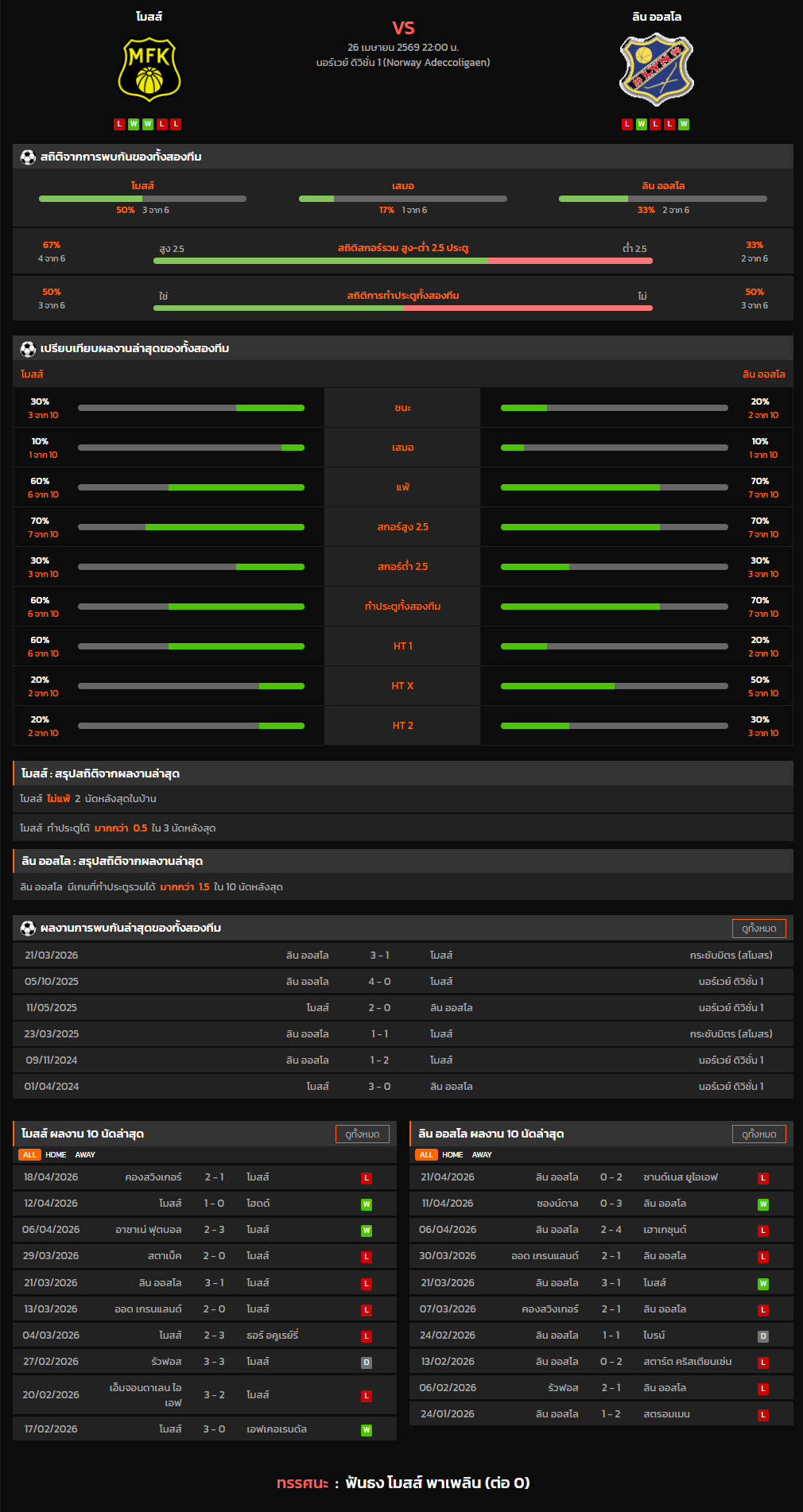 วิเคราะห์บอล นอร์เวย์ ดิวิชั่น 1 2025-26 โมสส์ VS ลิน ออสโล