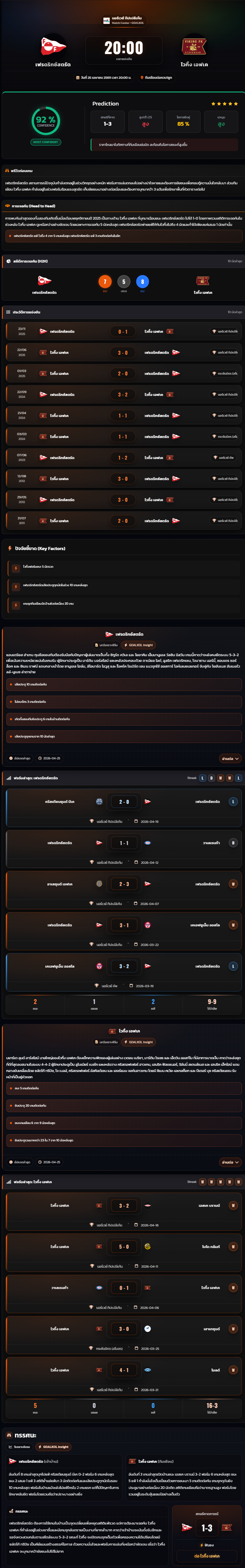 วิเคราะห์บอล นอร์เวย์ ทิปเปลีเก้น 2025-26 เฟรดริกซ์สตรัด vs ไวกิ้ง เอฟเค