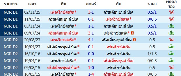 ราคาบอล : เฟรดริกซ์สตรัด ต่อ 0/0.5