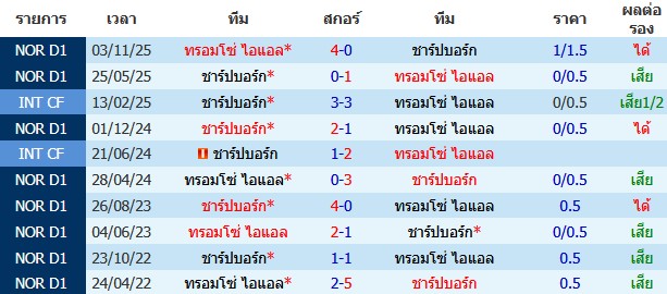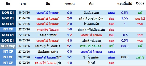 ผลงาน 10 นัดหลังสุดของทีม ทรอมโซ่