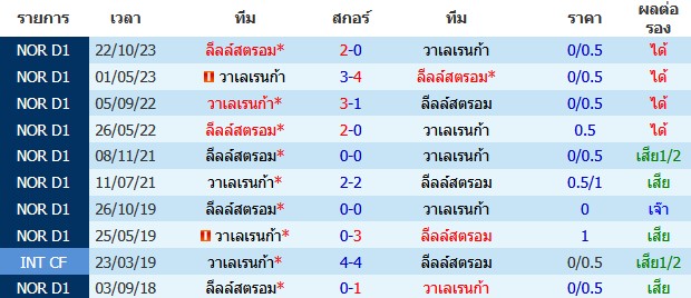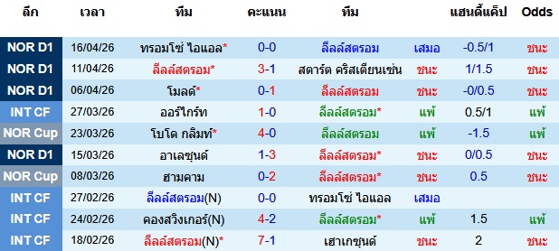 ผลงาน 10 นัดหลังสุดของทีม ลีลล์สตรอม