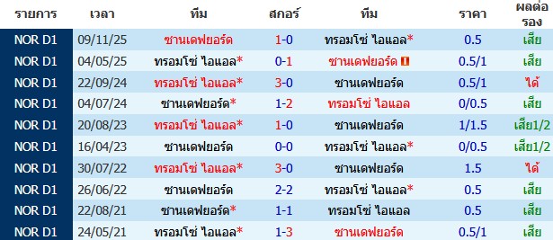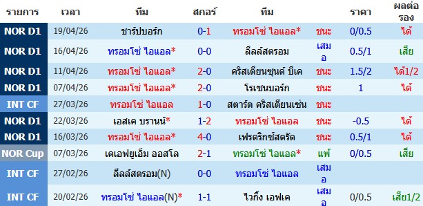 ผลงาน 10 นัดหลังสุดของทีม ทรอมโซ่ ไอแอล