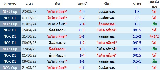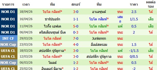 ผลงาน 10 นัดหลังสุดของทีม โบโด กลิมท์