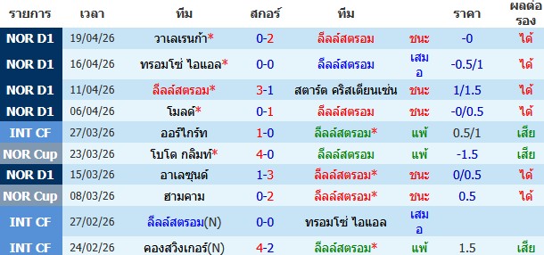 ผลงาน 10 นัดหลังสุดของทีม ลีลล์สตรอม