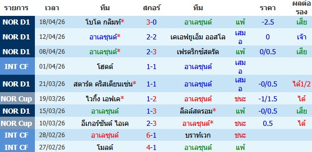 ผลงาน 10 นัดหลังสุดของทีม อาเลซุนด์