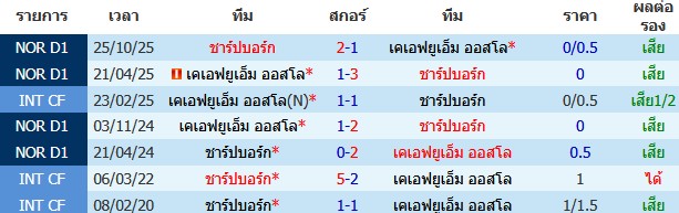 ราคาบอล : เคเอฟยูเอ็ม ออสโล ต่อ 0/0.5