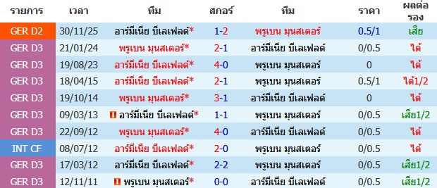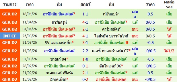 ราคาบอล : อาร์มีเนีย บีเลเฟลด์ ต่อ 0/0.5