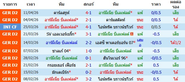 ผลงาน 10 นัดหลังสุดของทีม อาร์มีเนีย บีเลเฟลด์