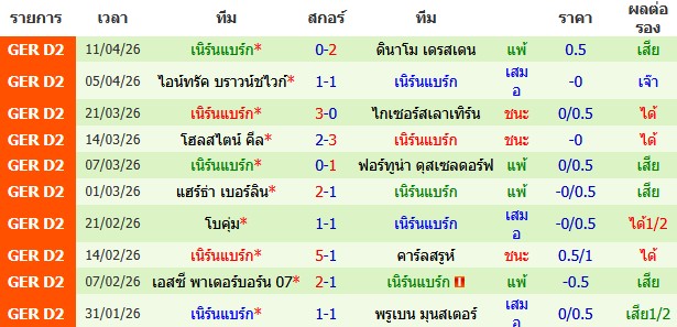 ผลงาน 10 นัดหลังสุดของทีม เนิร์นแบร์ก