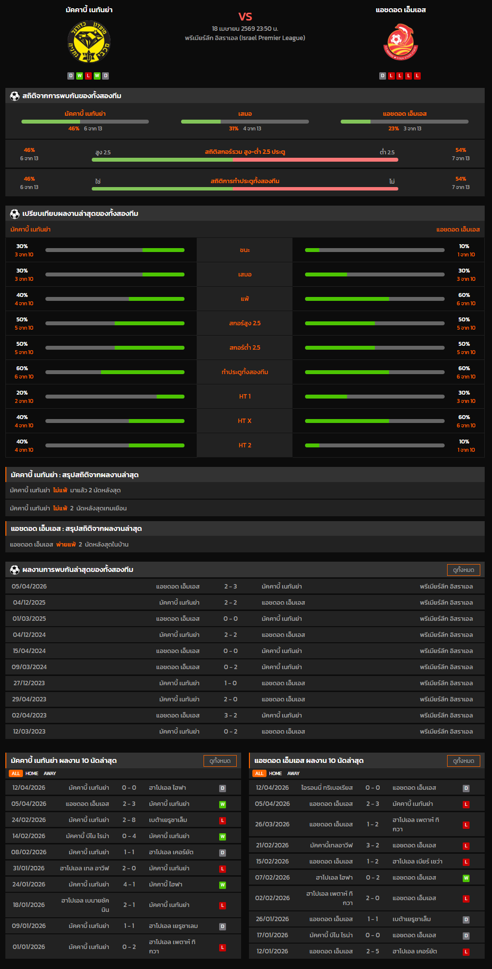 วิเคราะห์บอล พรีเมียร์ลีก อิสราเอล 2025-26 มัคคาบี้ เนทันย่า VS แอชดอด เอ็มเอส
