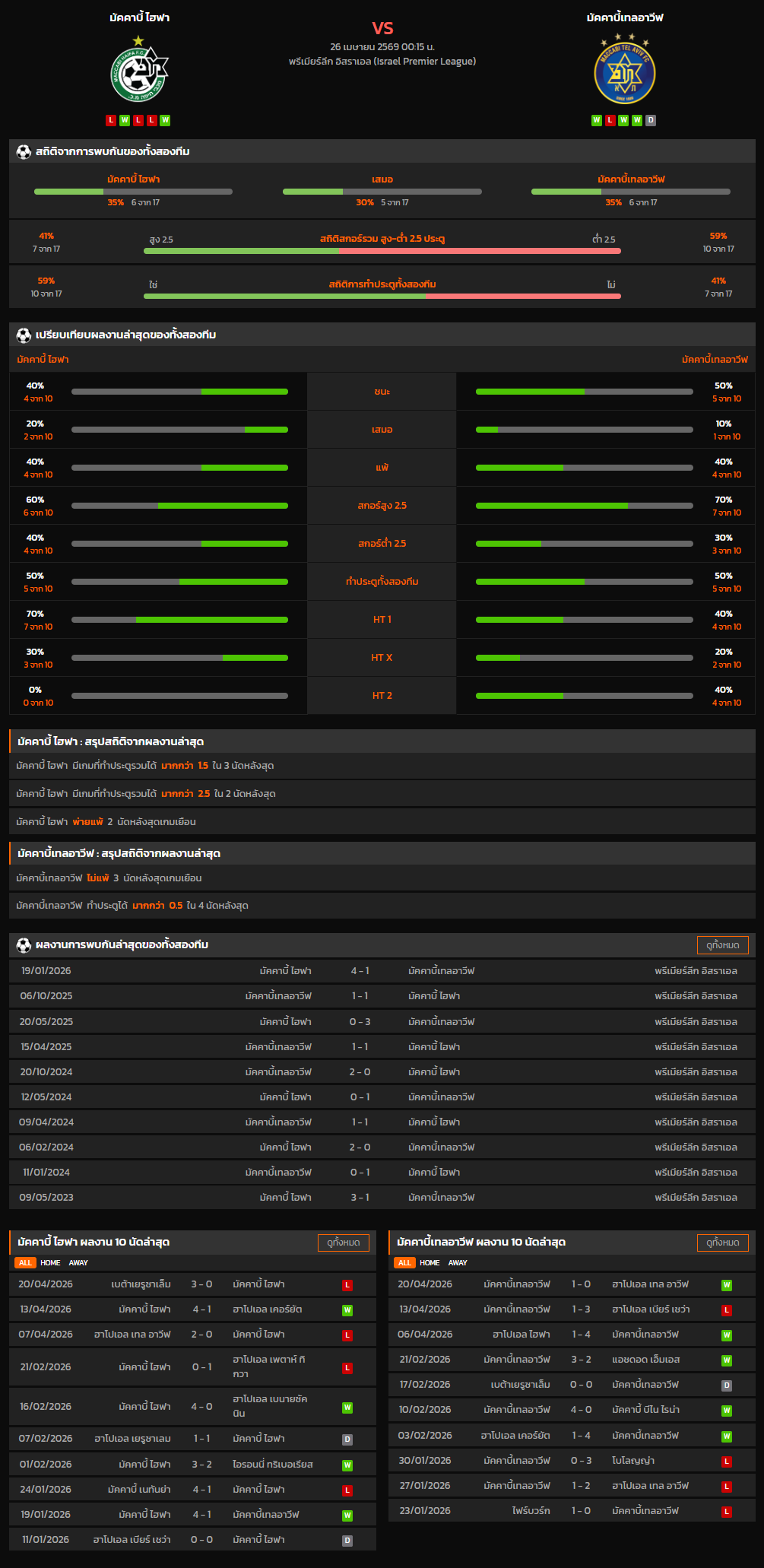 วิเคราะห์บอล พรีเมียร์ลีก อิสราเอล 2025-26 มัคคาบี้ ไฮฟา VS มัคคาบี้เทลอาวีฟ