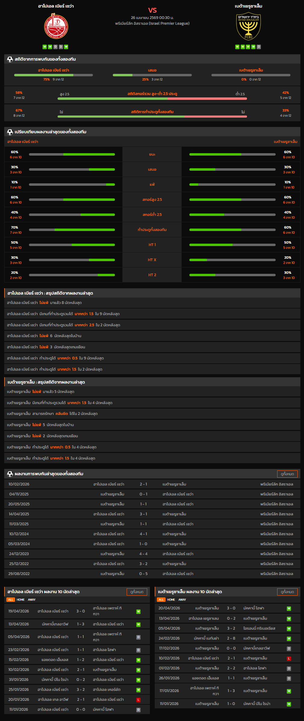 วิเคราะห์บอล พรีเมียร์ลีก อิสราเอล 2025-26 ฮาโปเอล เบียร์ เชว่า VS เบต้าเยรูซาเล็ม