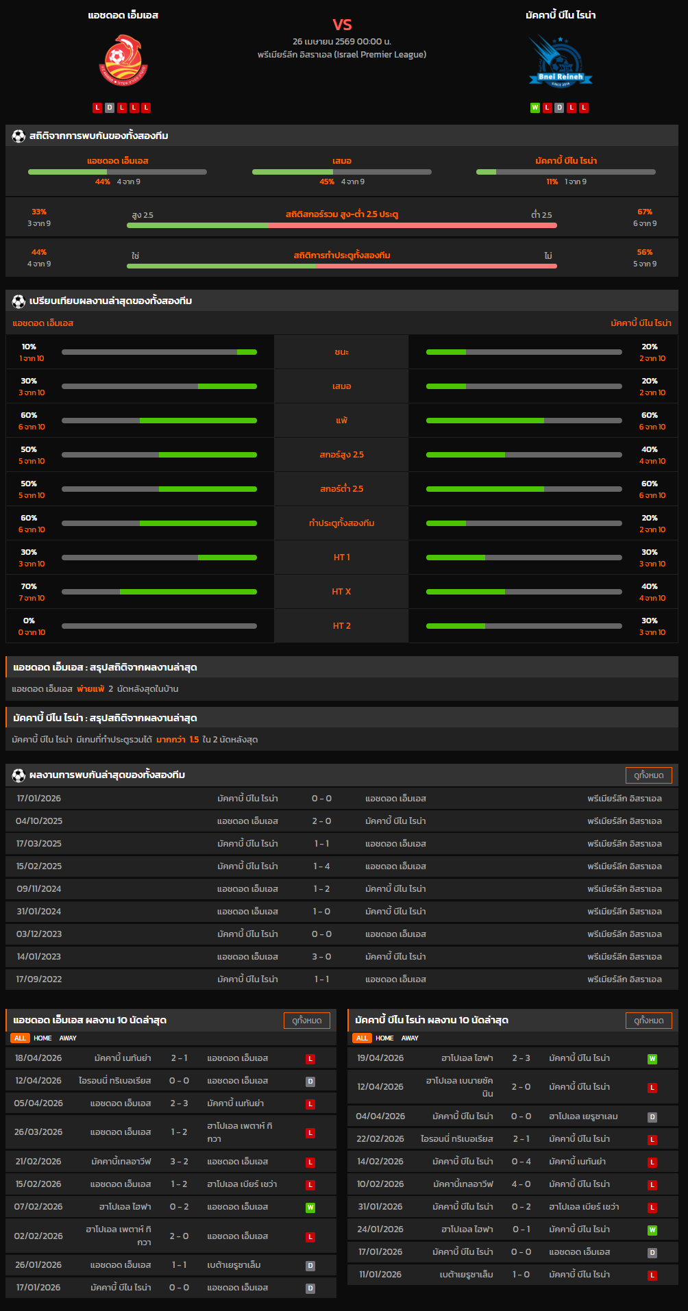 วิเคราะห์บอล พรีเมียร์ลีก อิสราเอล 2025-26 แอชดอด เอ็มเอส VS มัคคาบี้ บีไน ไรน่า
