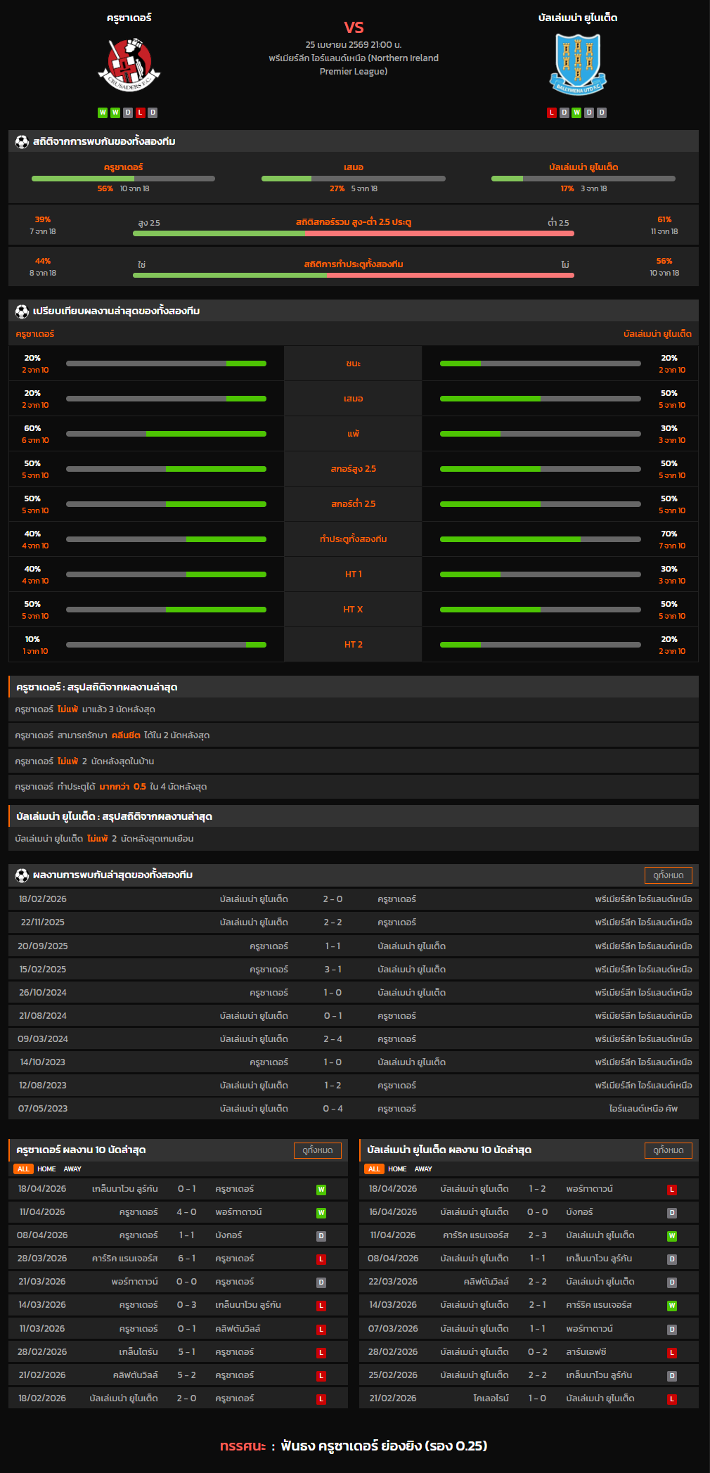 วิเคราะห์บอล พรีเมียร์ลีก ไอร์แลนด์เหนือ 2025-26 ครูซาเดอร์ VS บัลเล่เมน่า ยูไนเต็ด